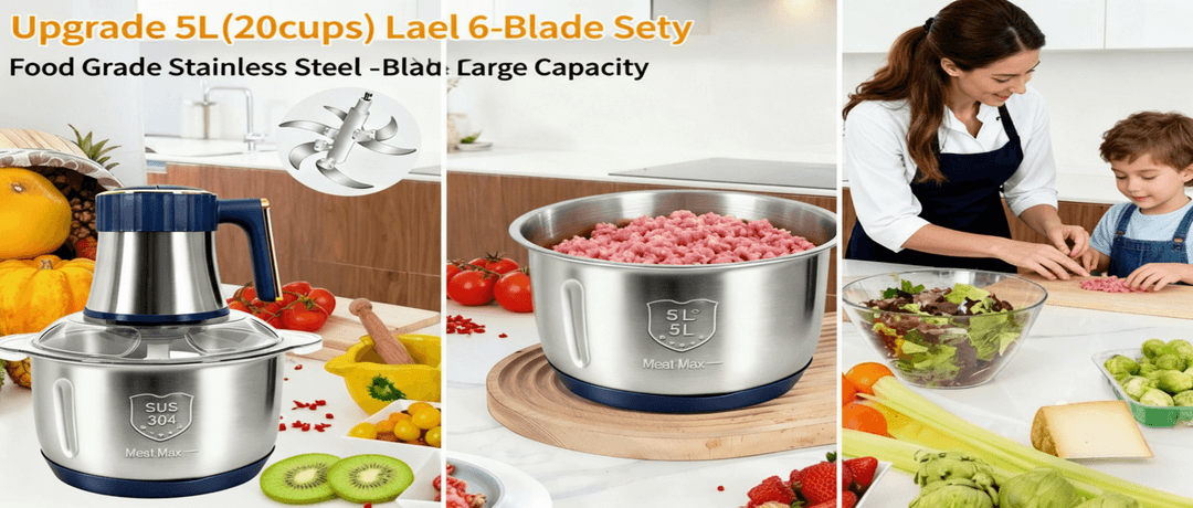 Food Processor,5-Speed Electric Food Chopper,Meat Grinder 5L(20Cups) with two 6-blade sets,500w Powerful Vegetable Chopper Used for Dough Mixing,Meat, Nuts, Fruits, Garlic And Vegetables