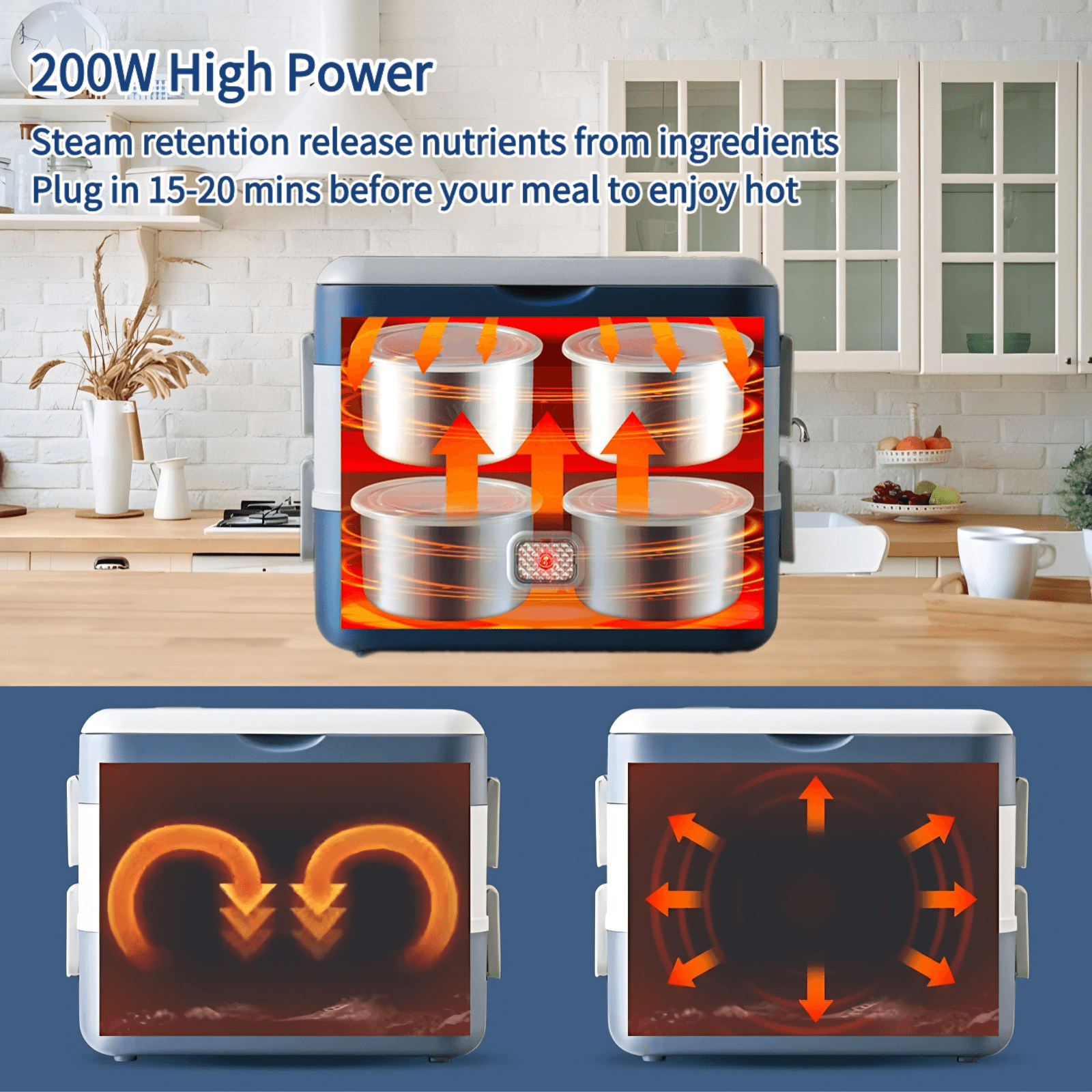 - 【Multi-Functional Bento Box】This 200W electric lunch box heats quickly and evenly. Its dual-layer design prevents flavor mixing. Plug in 15-20 mins before your meal to enjoy hot, fresh food anywhere. Remember to open the exhaust cover before heating