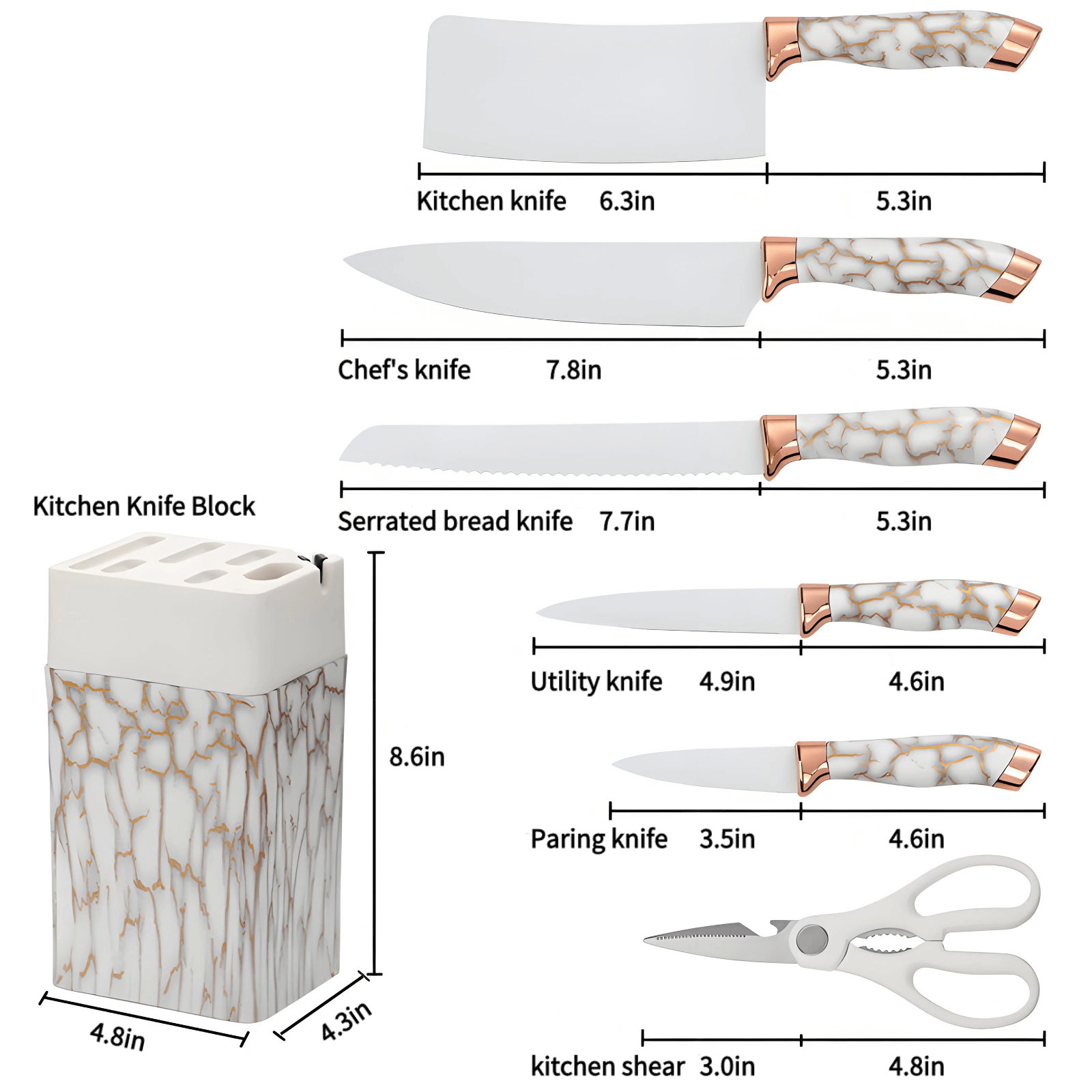 - 【Service Guarantee】 This knife set is the best gift choice for your loved ones. If you receive any defective item, please contact us in time, we will give you a satisfactory answer within 24 hours
