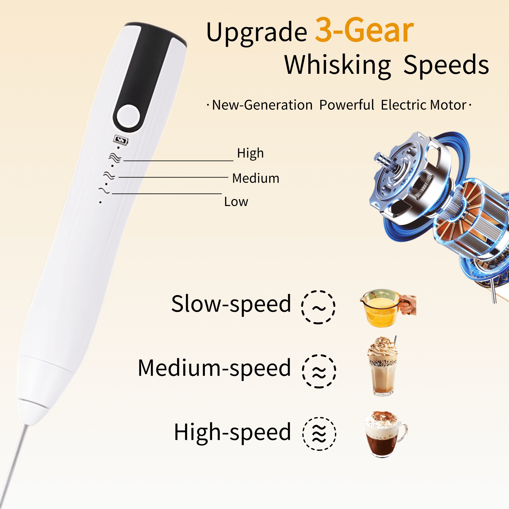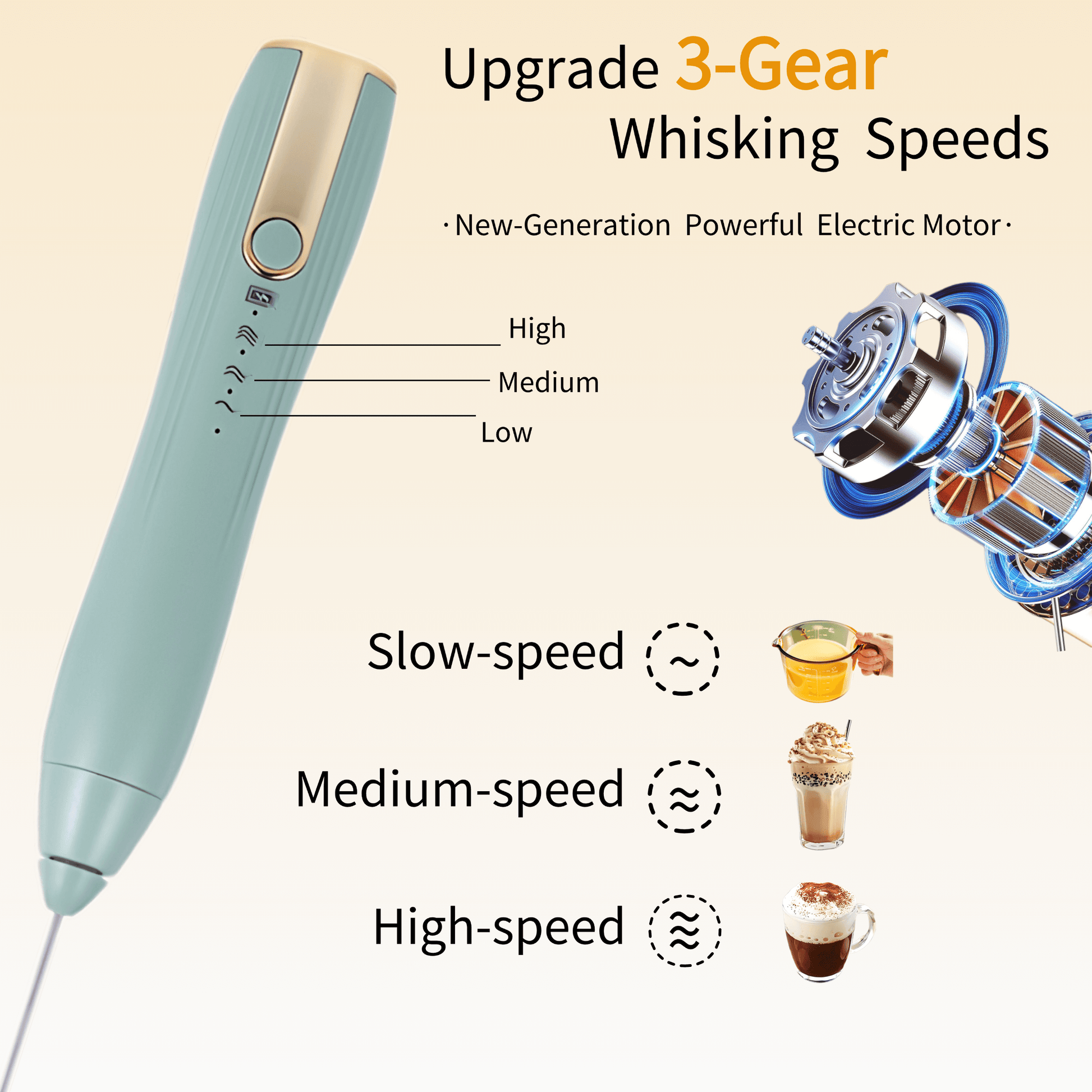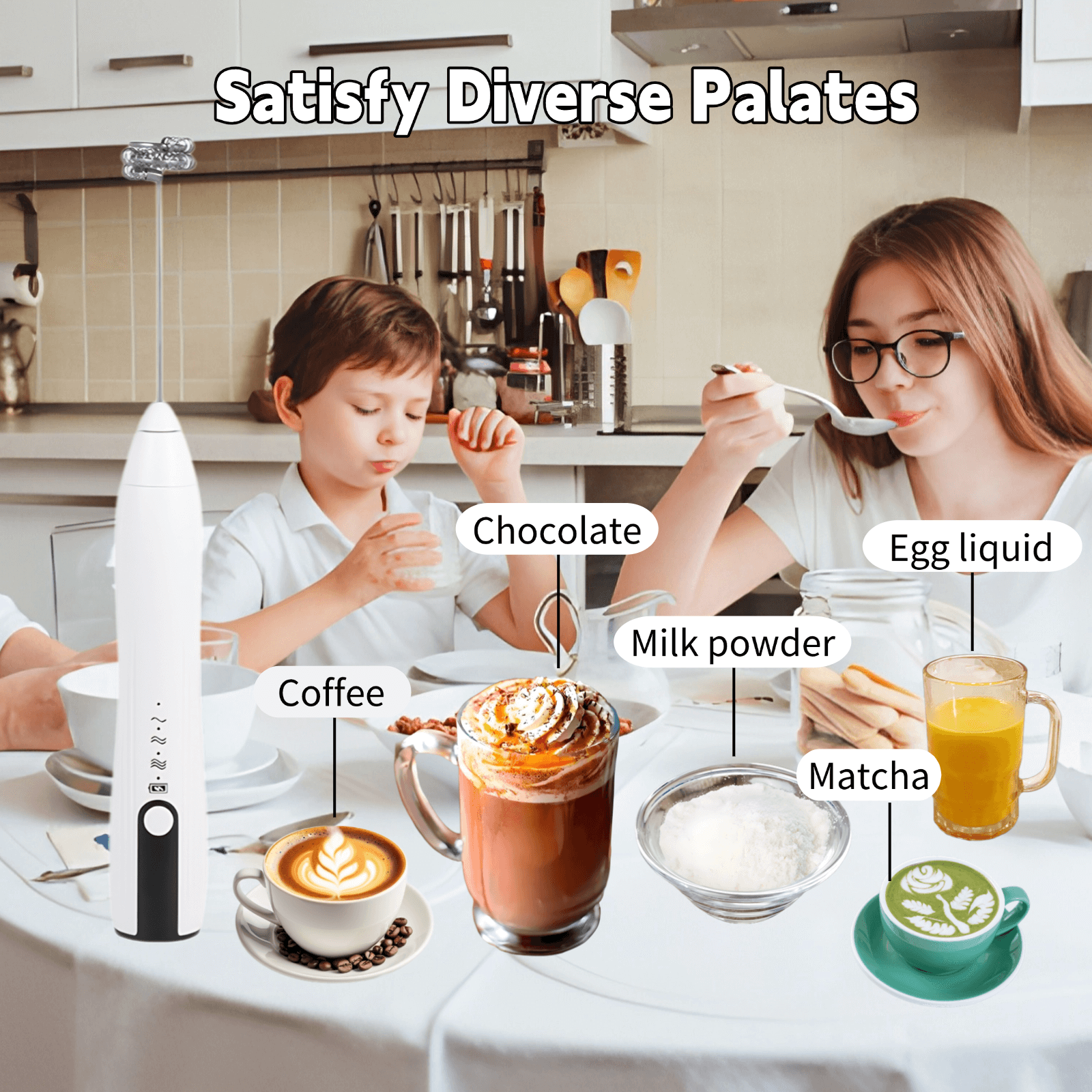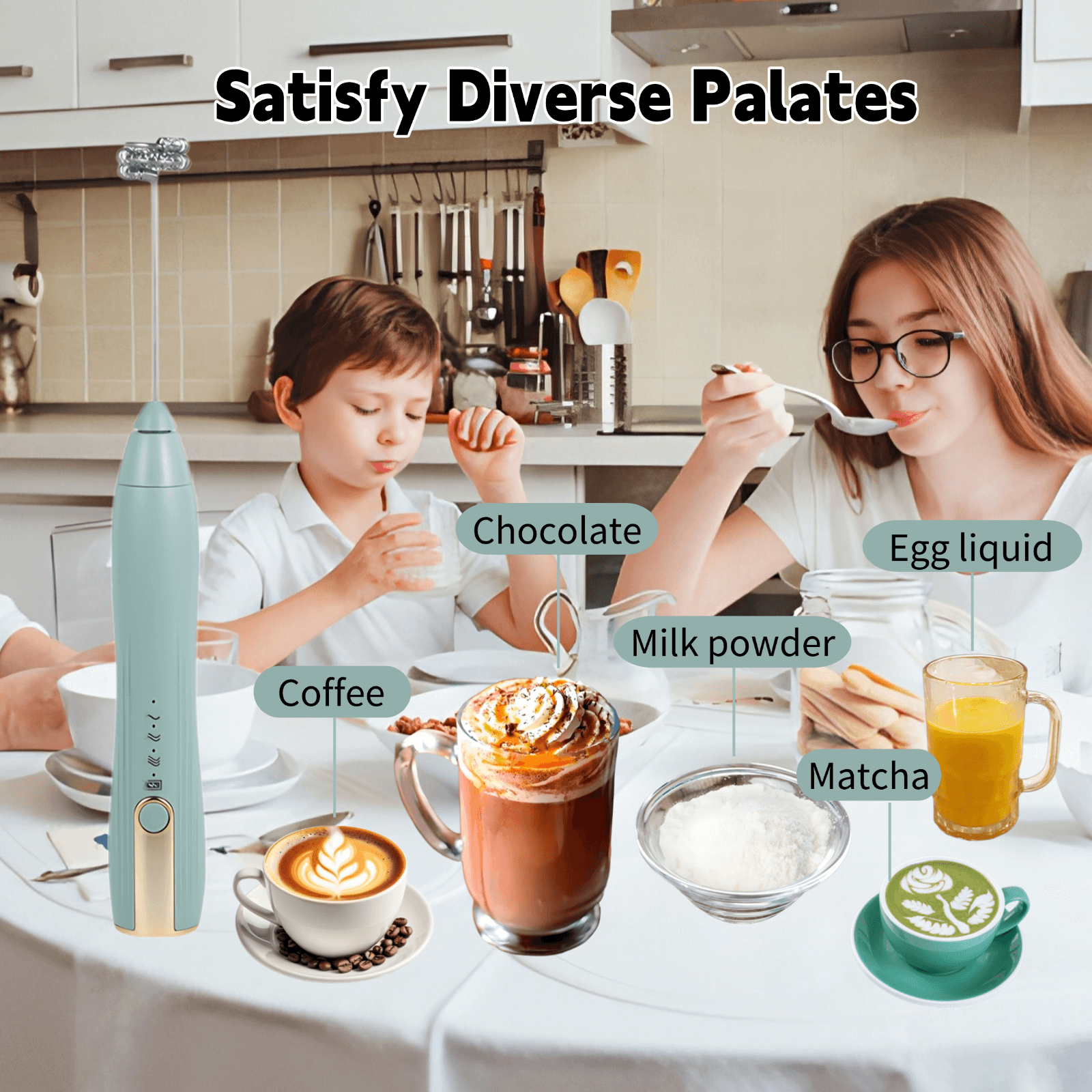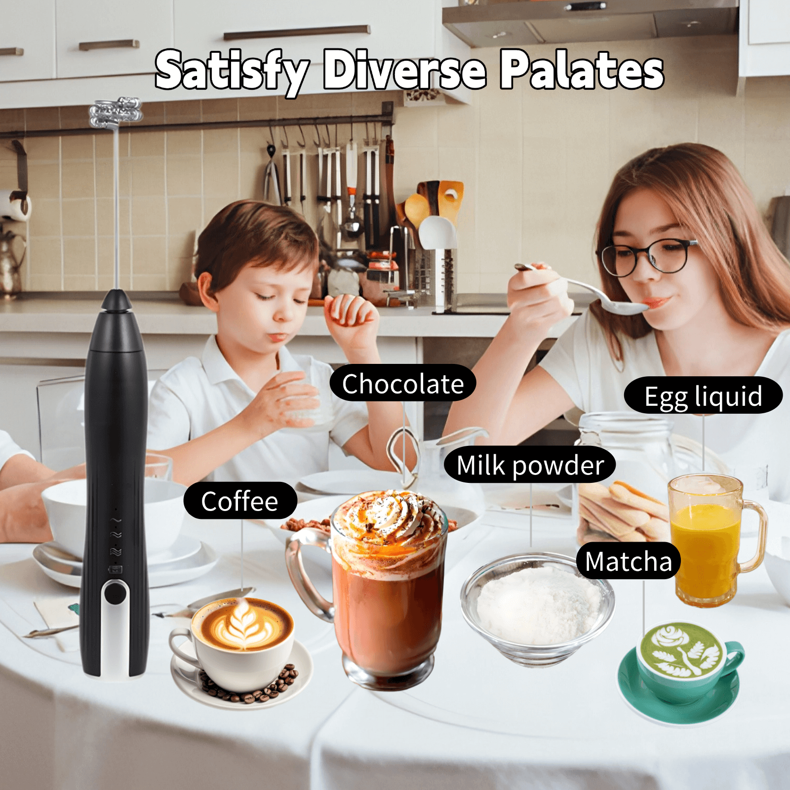 Equipped with 3 distinct stainless steel mixing heads, they can be easily swapped out based on your needs, whether it's for coffee, egg whites and yolks, or milk powder