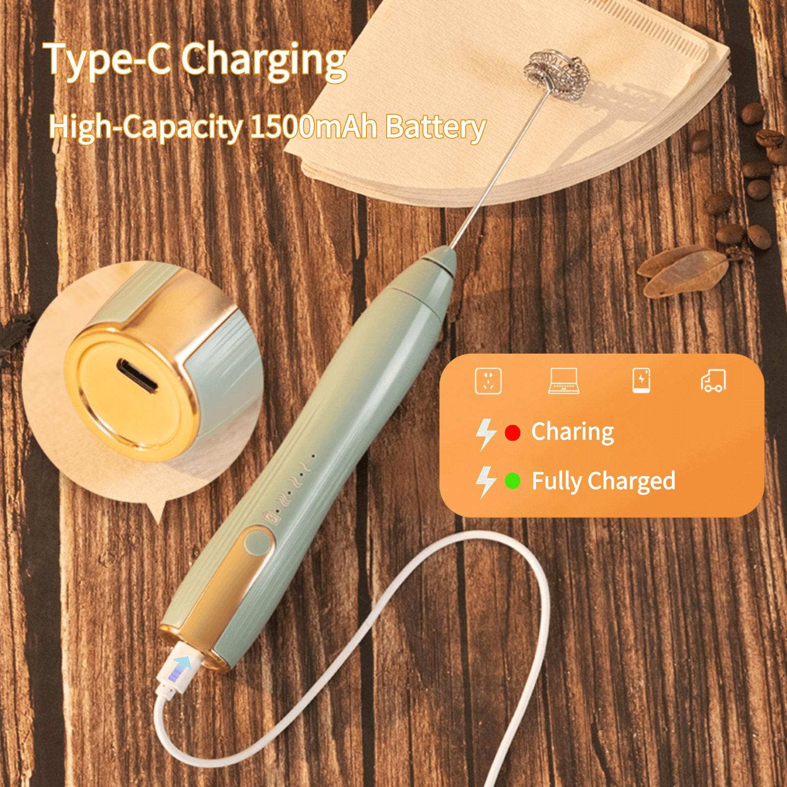 Rechargeable Milk Frother Handheld,Kitchen Essentials Hand Mixer with 3 Stainless Whisks Heads,Electric Whisk Frother for Latte, Cappuccino,Macchiato,Matcha, Egg, Milk Powder,with Stand